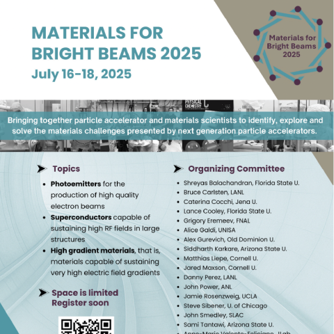 Over the past decade, the Center for Bright Beams has been a leader in designing new materials to improve the performance of particle accelerators. CBB scientists apply advanced materials science to the devices that produce and accelerate beams, which operate in extreme conditions and must deliver performance at the edge of materials feasibility. The inaugural Materials for Bright Beams Workshop, held at Cornell University, marked a major milestone—bringing together researchers from across disciplines to dive into the science and chart the future of materials for accelerators.